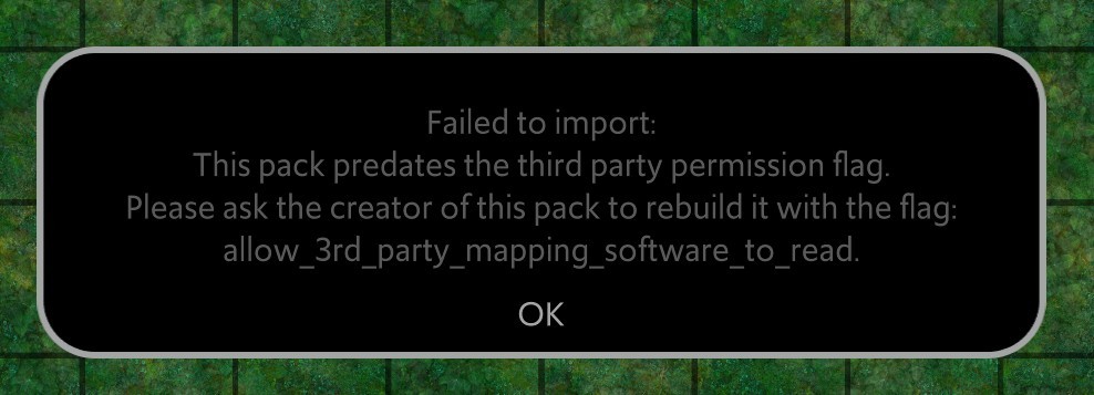 If you have older content packs that pre-date the ability to opt-in to non-Dungeondraft importing, you need not worry. We won’t import those either.