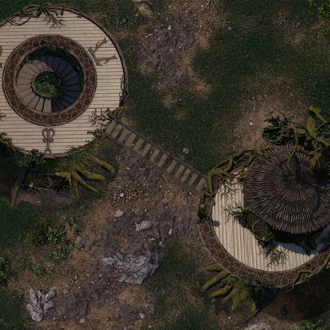 Create your own Elven tree village battlemaps with static and animated assets. Have your fight it out amongst the ancient trees of the elves, or are your party of dwarves finding themselves trespassing on sacred ground? . Whether its DND or your favorite fantasy ttrpg, Take a break from the dungeon and get lost in an elven tree village