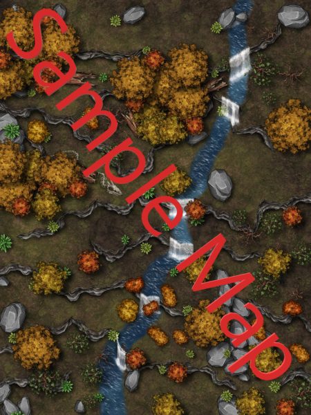 ● Cliffside Brook – This sloping map provides the perfect place for tiered level ambushes and winding paths for players to explore. Size – 30 x 40 tiles.