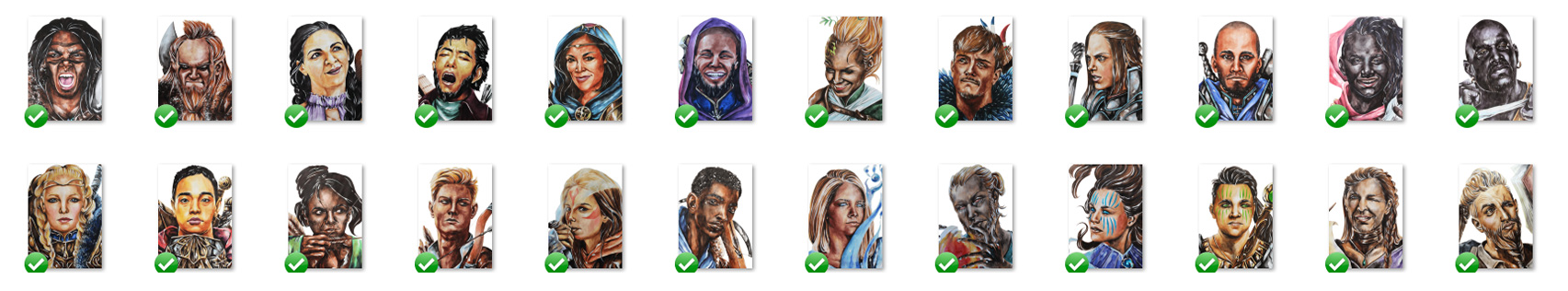 - 24 hand painted unique portrait images with transparent background (1398×1980)