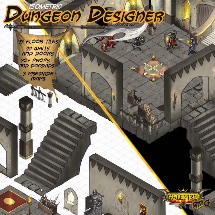 With the Isometric Dungeon Designer, you can create a myriad of fantasy, isometric dungeons for the needs of your party and gaming group.