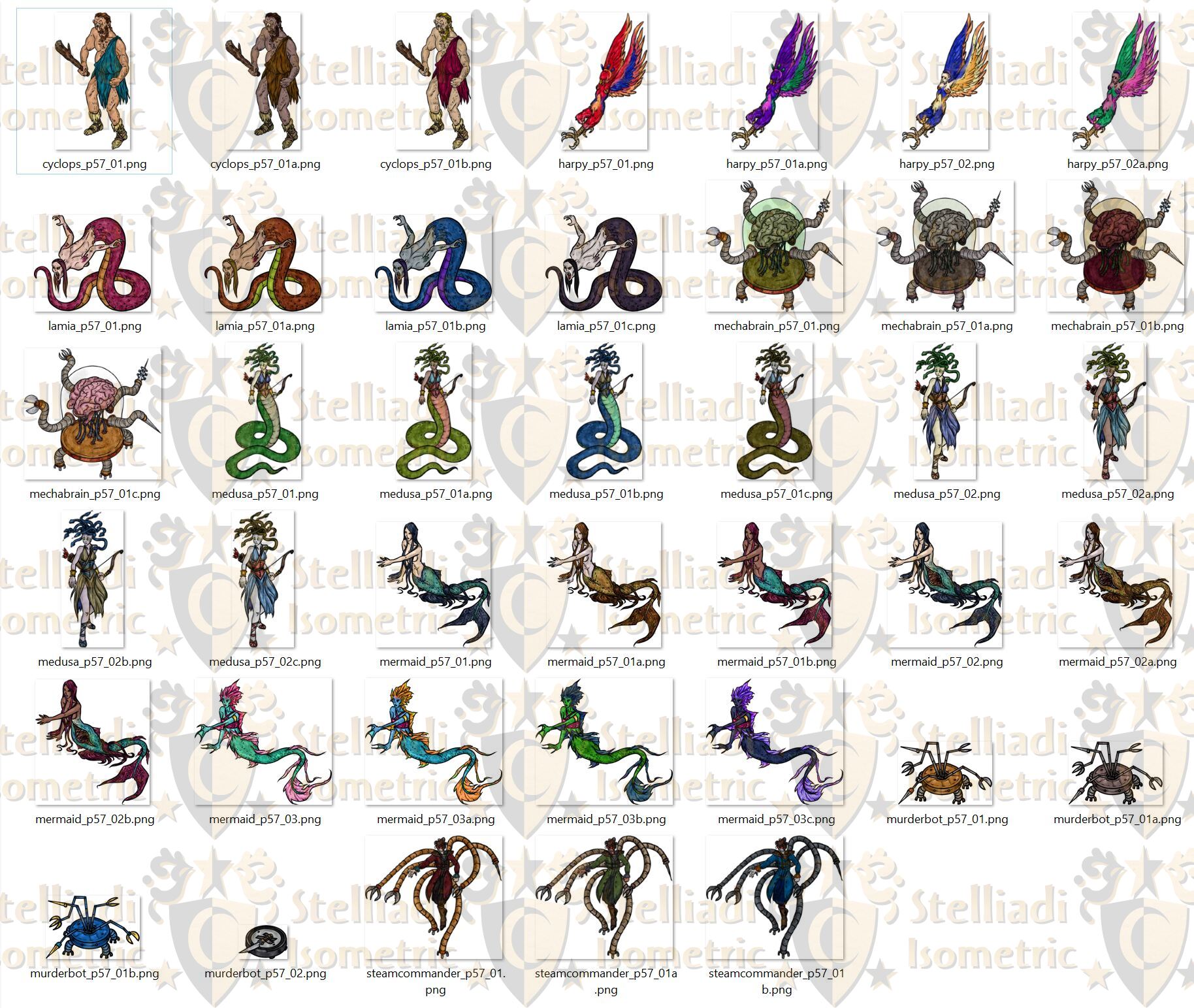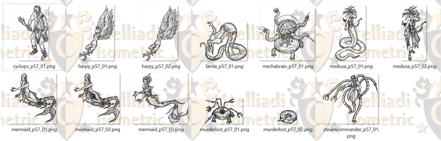 16 tokens featuring various mythical and steampunk monsters!