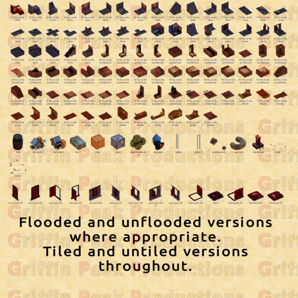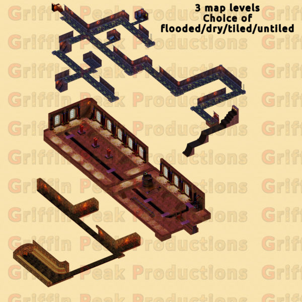 Three complete steampunk dungeon level: sewer, pumphouse and temple;