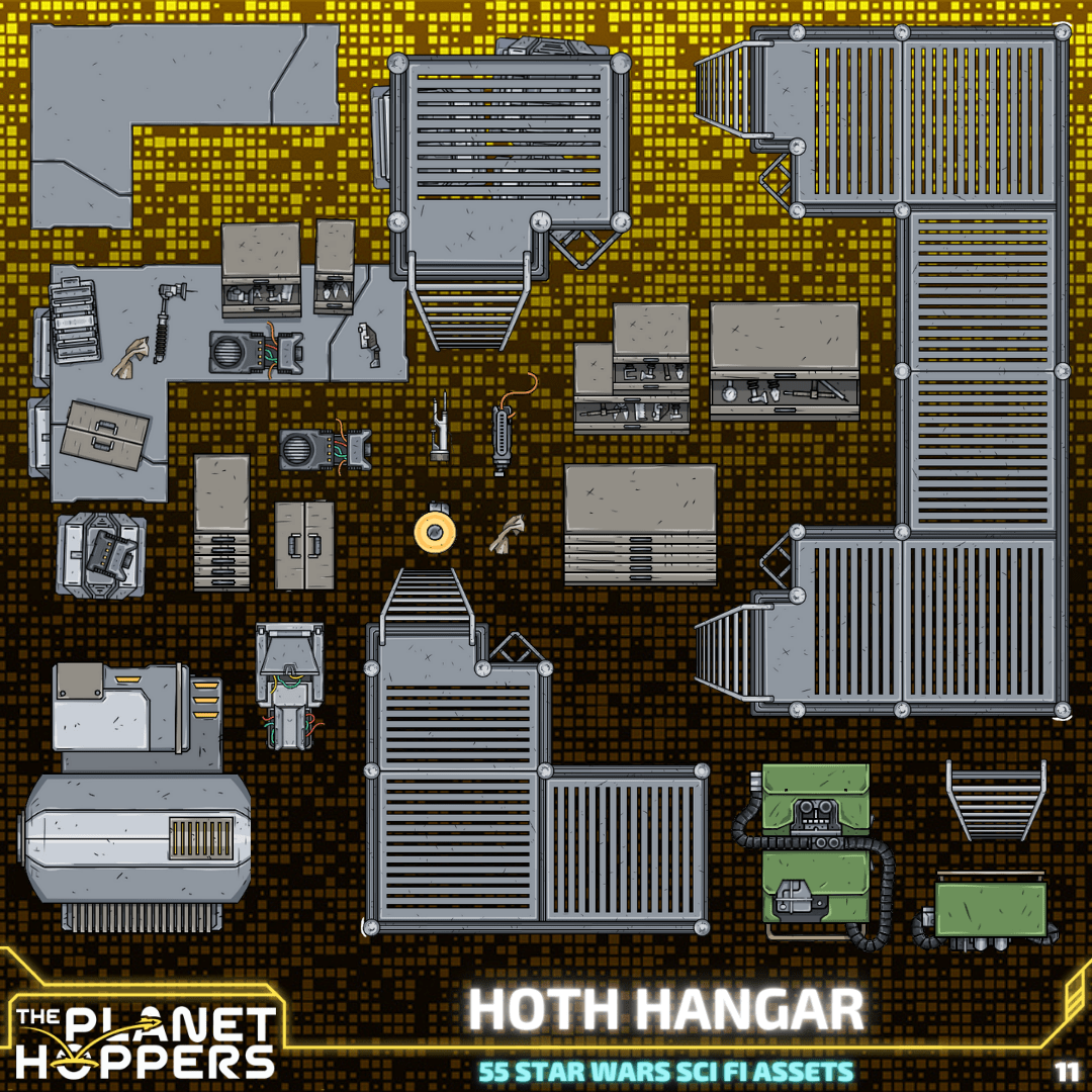 Ahoy Hoppers! Get ready for Liftoff, as we bring you a collection of defensive assets for ourfitting your own rebel hangar. This includes 55 themed assets and a DungeonDraft pack, including (but far from limited to!):