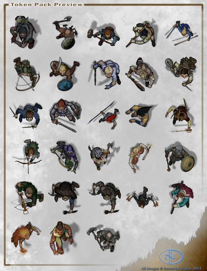 This pack contains a variety of character tokens, perfect for PC’s or NPC’s in your game.