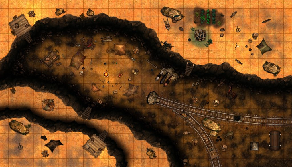 A map of a wild west campsite, created in Arkenforge